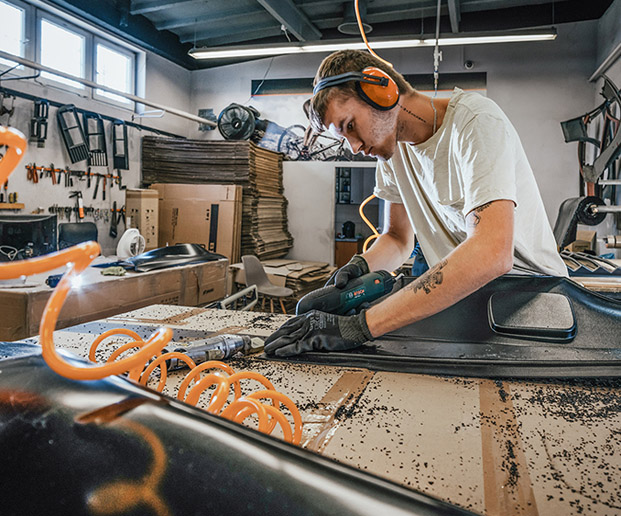 In 2018, we started the first thermoforming experiments. Many people said that nothing would work. And we made a plastic hood and a plastic wing for the Honda Capa. Year. It‘s all right. Honda has passed to a new owner with these parts.